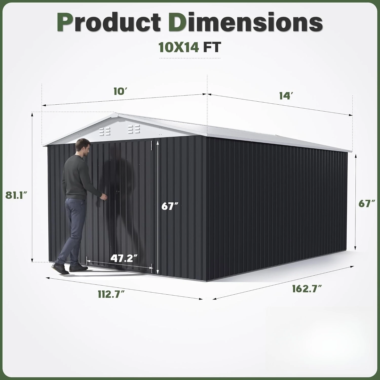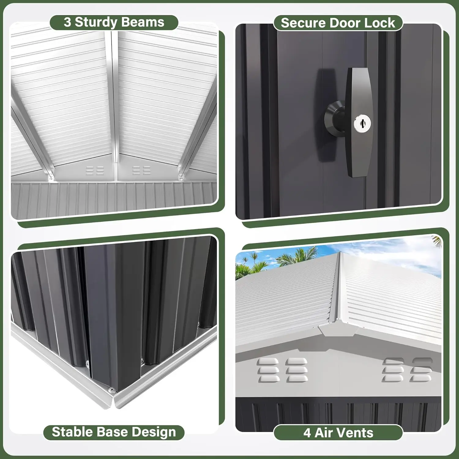 【Premium Material Selection】The garden shed features superior-grade metal with waterproof and UV-resistant capabilities. Its robust construction ensures reliable all-weather protection, standing up to even the most challenging conditions.Premium Material Selection.