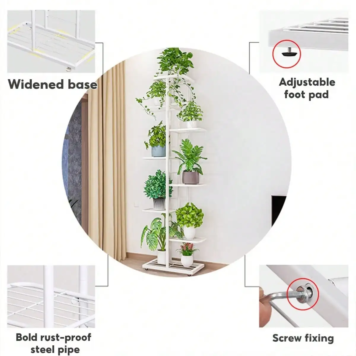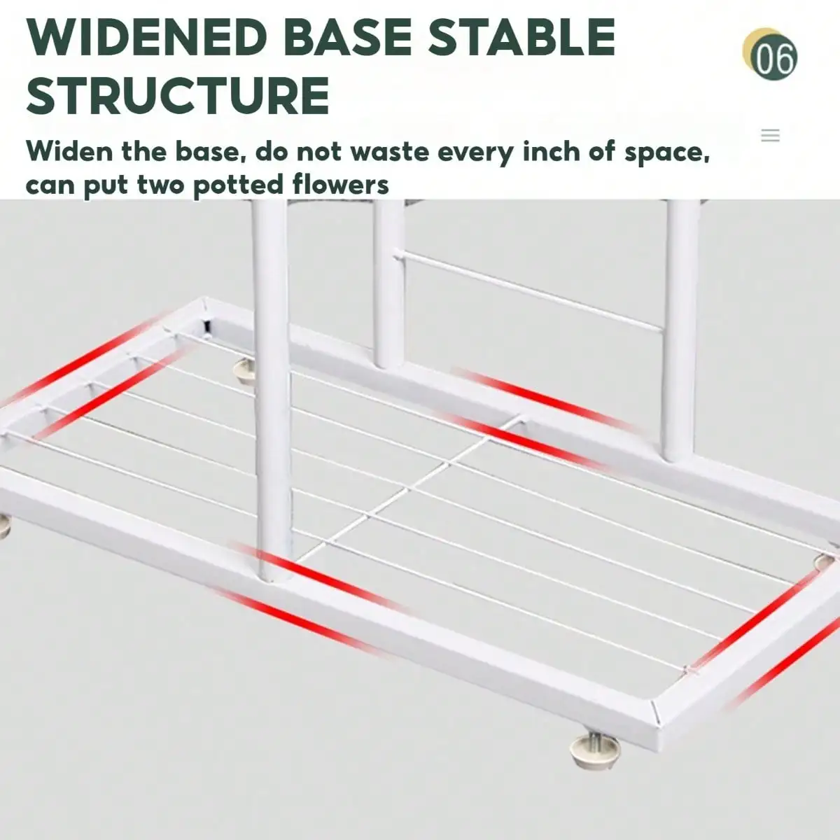 Practical and Durable Plant Stand: Made of 100% pure metal, smooth and burr-free, easy to maintain and wipe. Anti-rust spraying process, strong and durable. Grid layout, uniform load bearing, not easy to deform. The base is widened to make full use of the space. The round foot pads can not only prevent the ground from being scratched, but also maintain the balance of the plant stand.