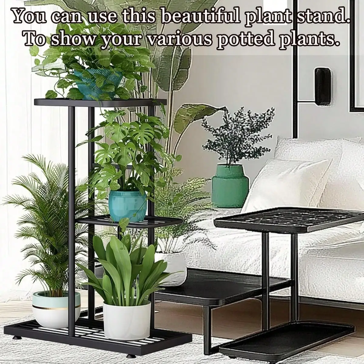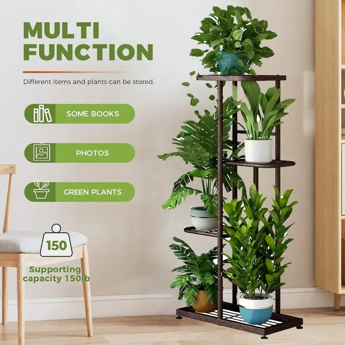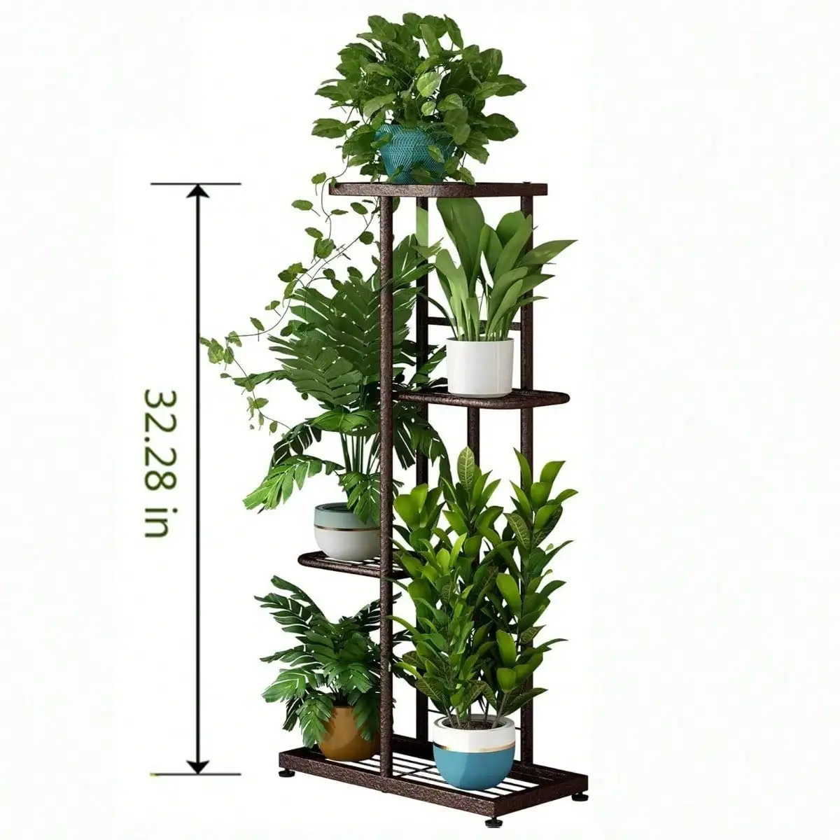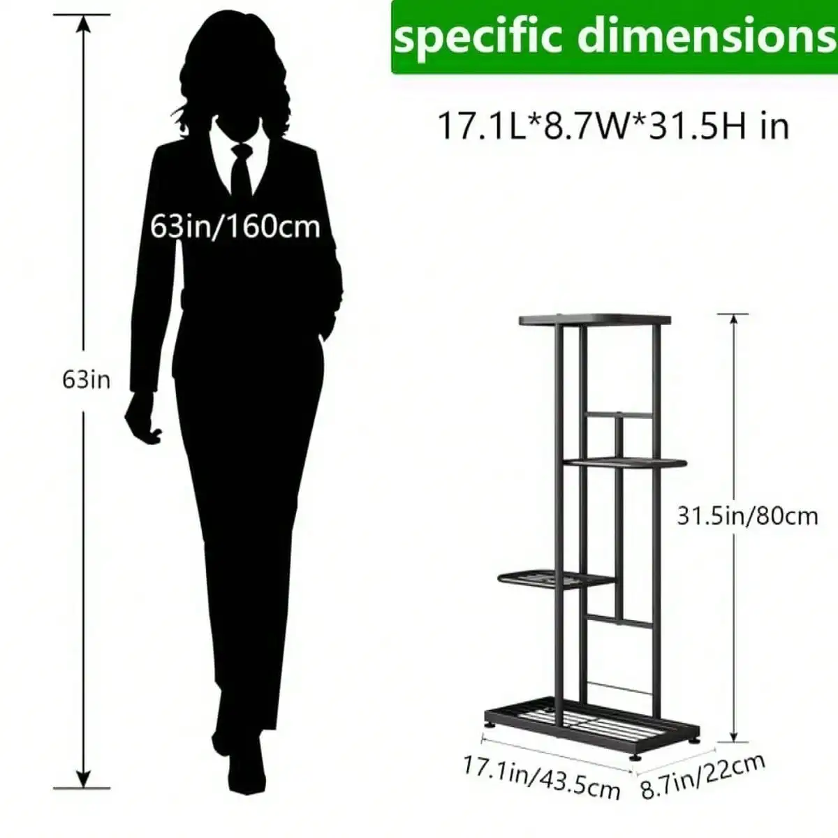 Indoor and Outdoor Metal Plant Stand: The vertical 4-tier plant stand holds at least 5 pots of lovely plants. It is easy to store, saves space, and is suitable for placing in any corner of the home. This is a lovely plant collection display stand.