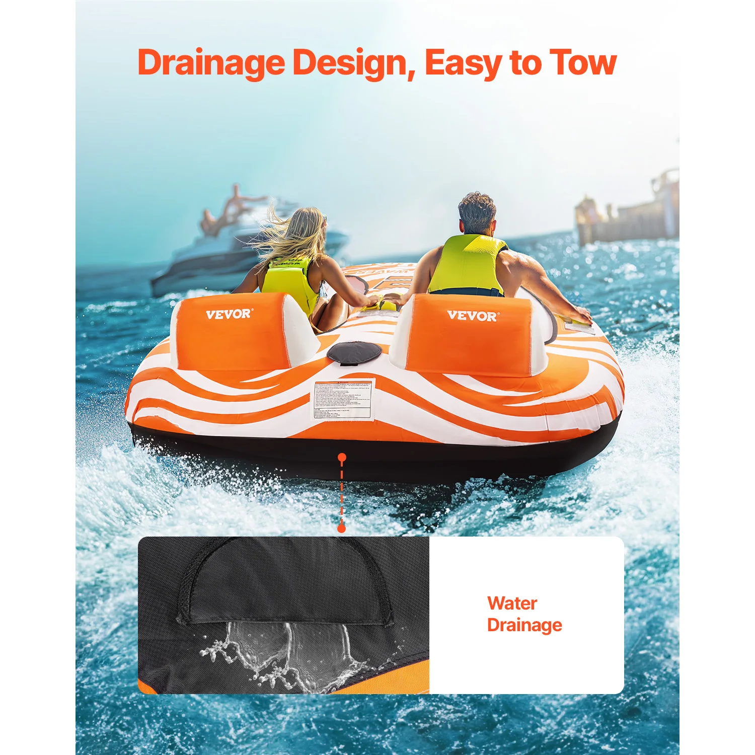 With a well-designed drainage system, this towable tube prevents dragging or sinking in the water. It improves speed and stability, ensuring a smooth glide with minimal resistance.