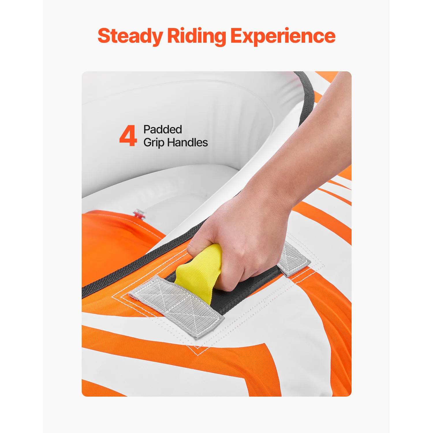 Comfort and Control on the Water: Equipped with 4 padded grip handles, this 2-person towable tube offers a safe, stable, and comfortable ride. The sturdy handles provide control, keeping you secure while gliding over the water